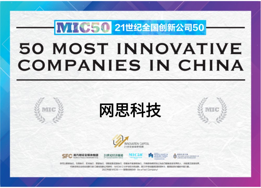 网思科技凭借雄厚的技术实力成功获得CMMI5、CCRC、6个ISO标准认证等资质,并被授予国家专精特新小巨人企业、国家高新技术企业、广东省专精特新中小企业和广州未来独角兽创新企业等多项政府和行业的重要荣誉。